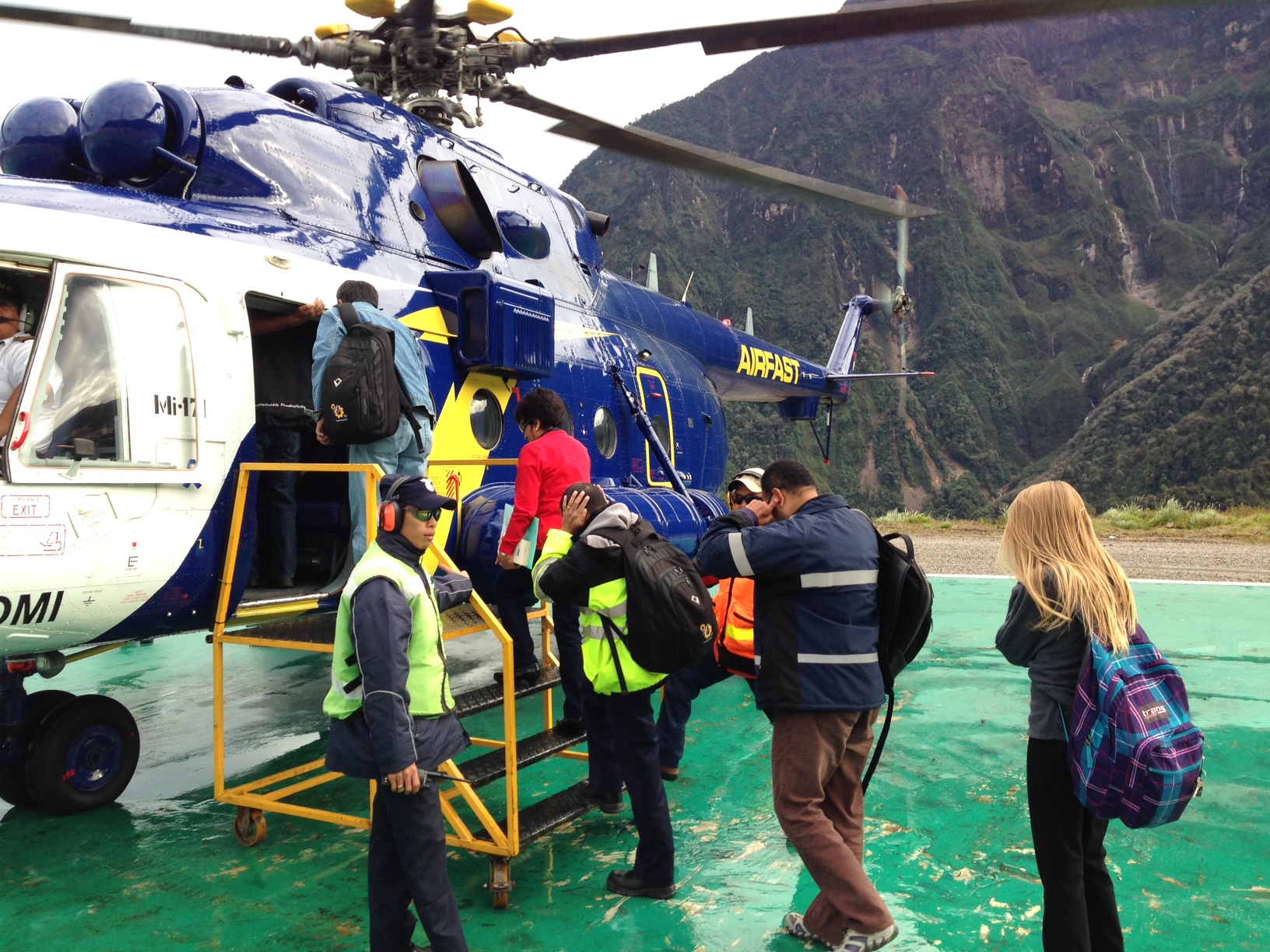 The Mi-171 is a Russian military-style helicopter that seats 23 passengers and 4 crew members. It only takes twenty-minutes to make the trip up or down the mountain. Obviously, the helicopter is the preferred source of transportation, but it only flies when the weather is good, which is particularly unpredictable in the middle of a rainforest.